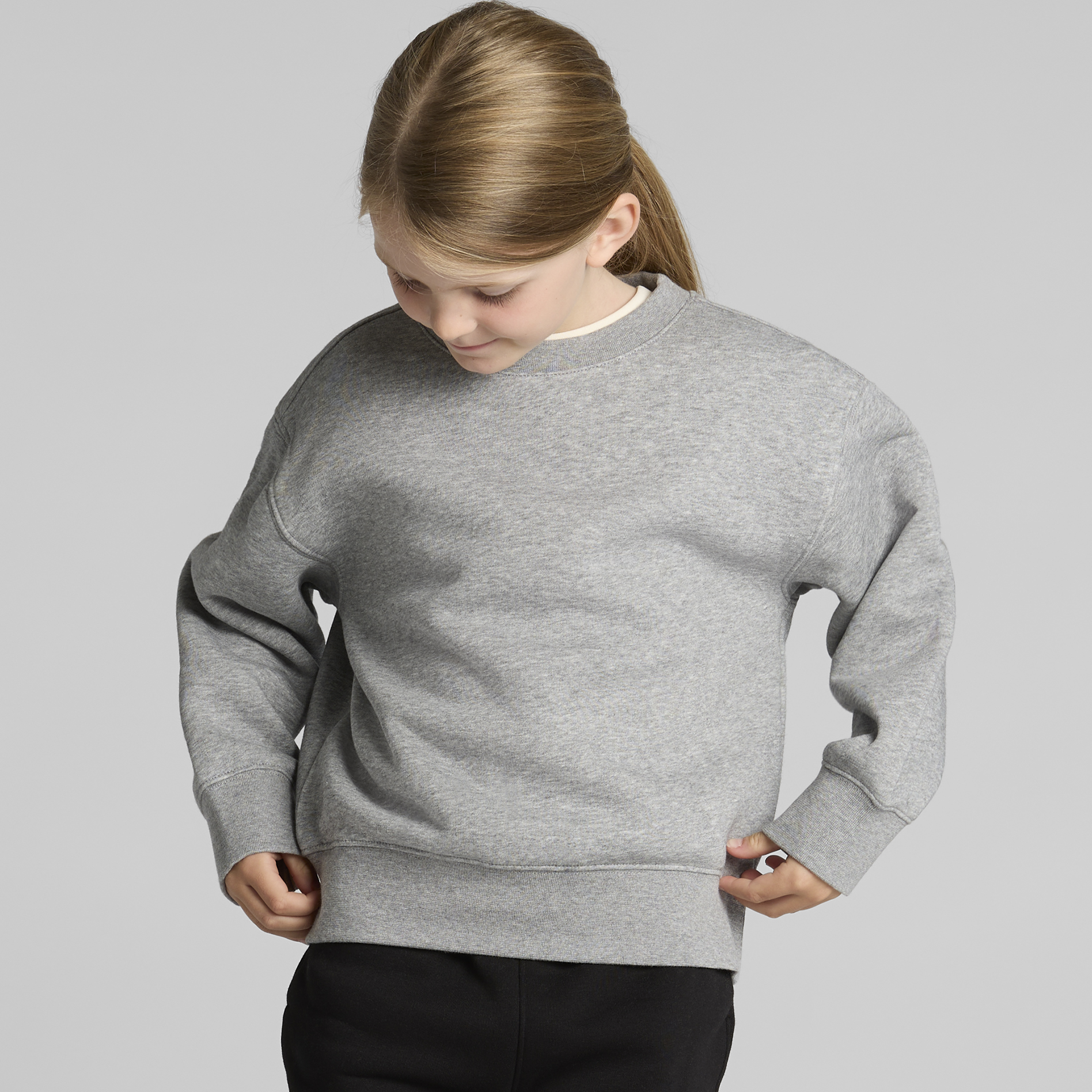The quintessential kids sweatshirt. Classic styling, excellent colourfastness and shape retention.